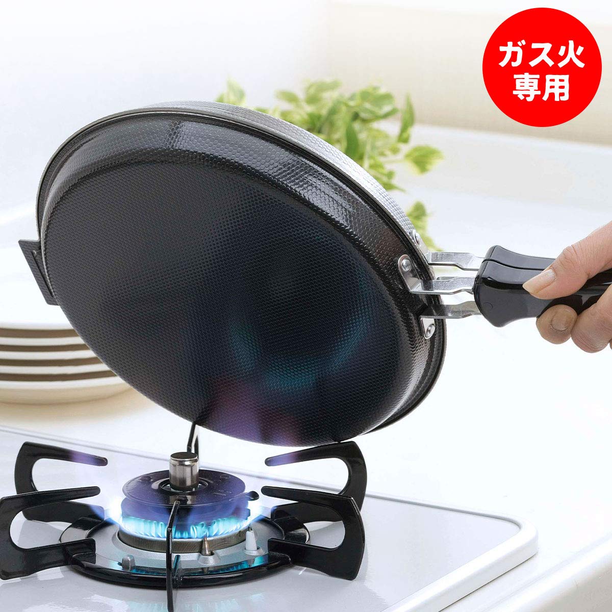 【大特価セール】下村企販 両面フライパン 丸型 【日本製】 直火専用 お好み焼き ホットケーキ パンケーキ ひっくり返しやすい 両面焼き 焦げつきにくい フライパンにもなる 両面エンボス ブラック 鉄製 燕三条 25739