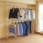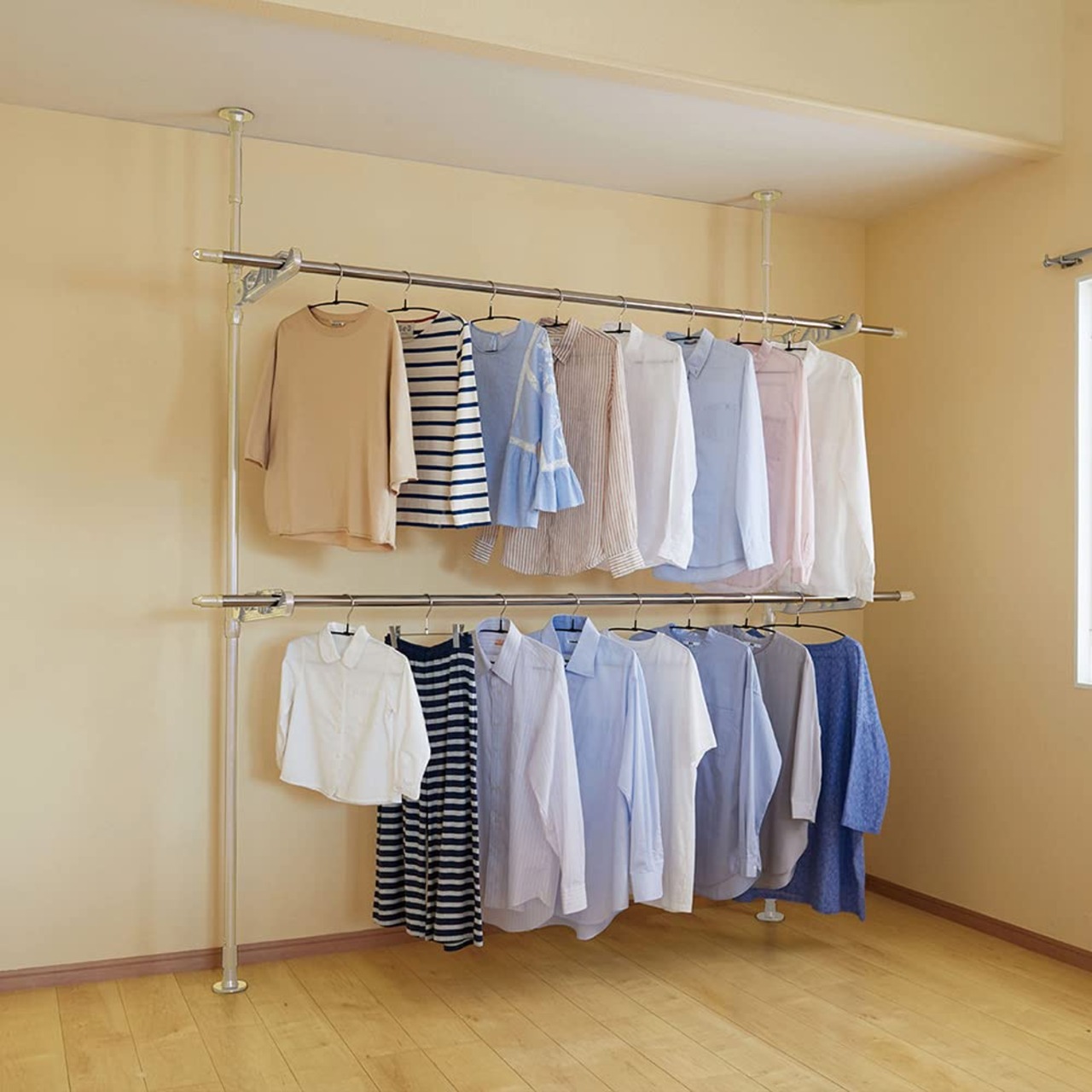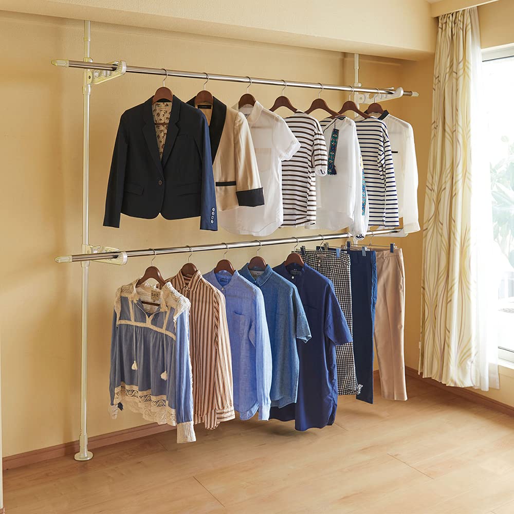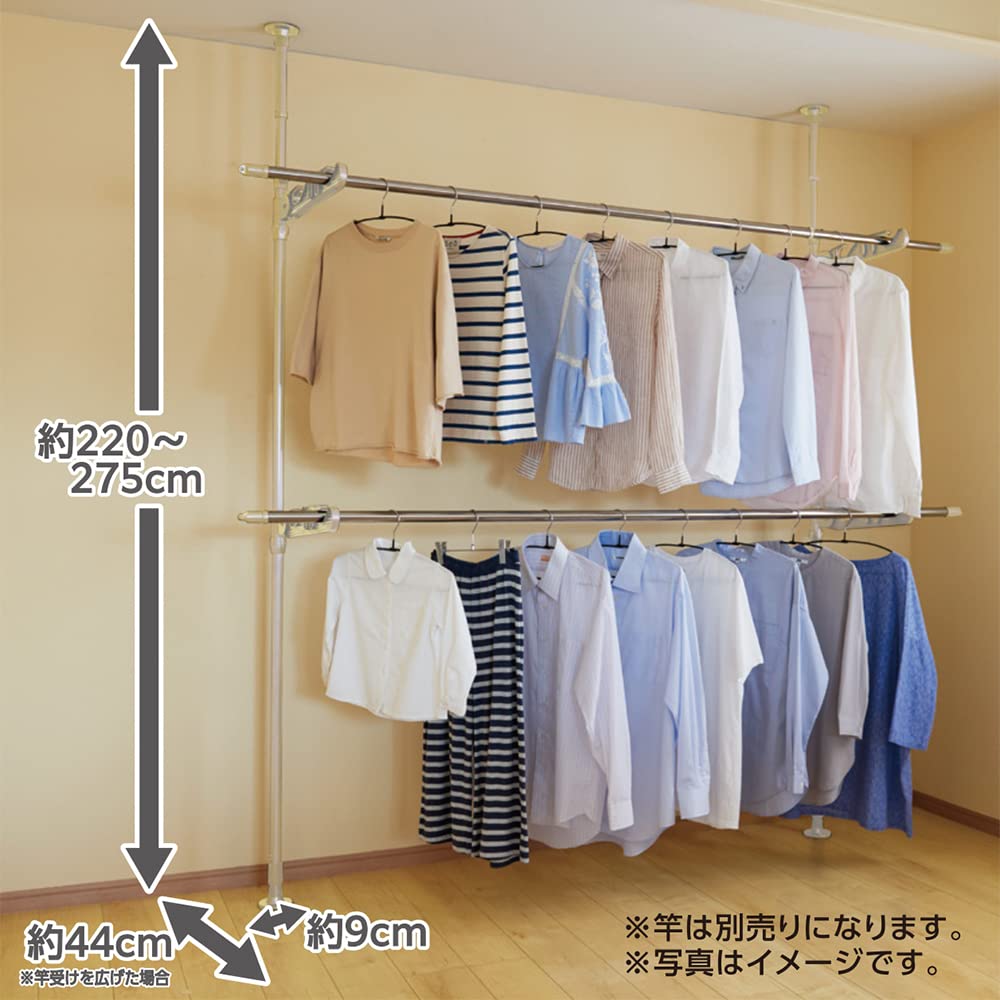 ベストコ 室内 突っ張り 物干し 幅9×奥行44×高さ220~275cm 2段タイプ ライトグレー NY-283