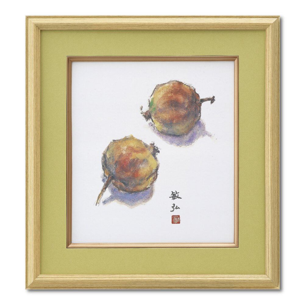 木目調の木製フレームに紙マットを入れた洋室にも和室にもよく合う色紙額。