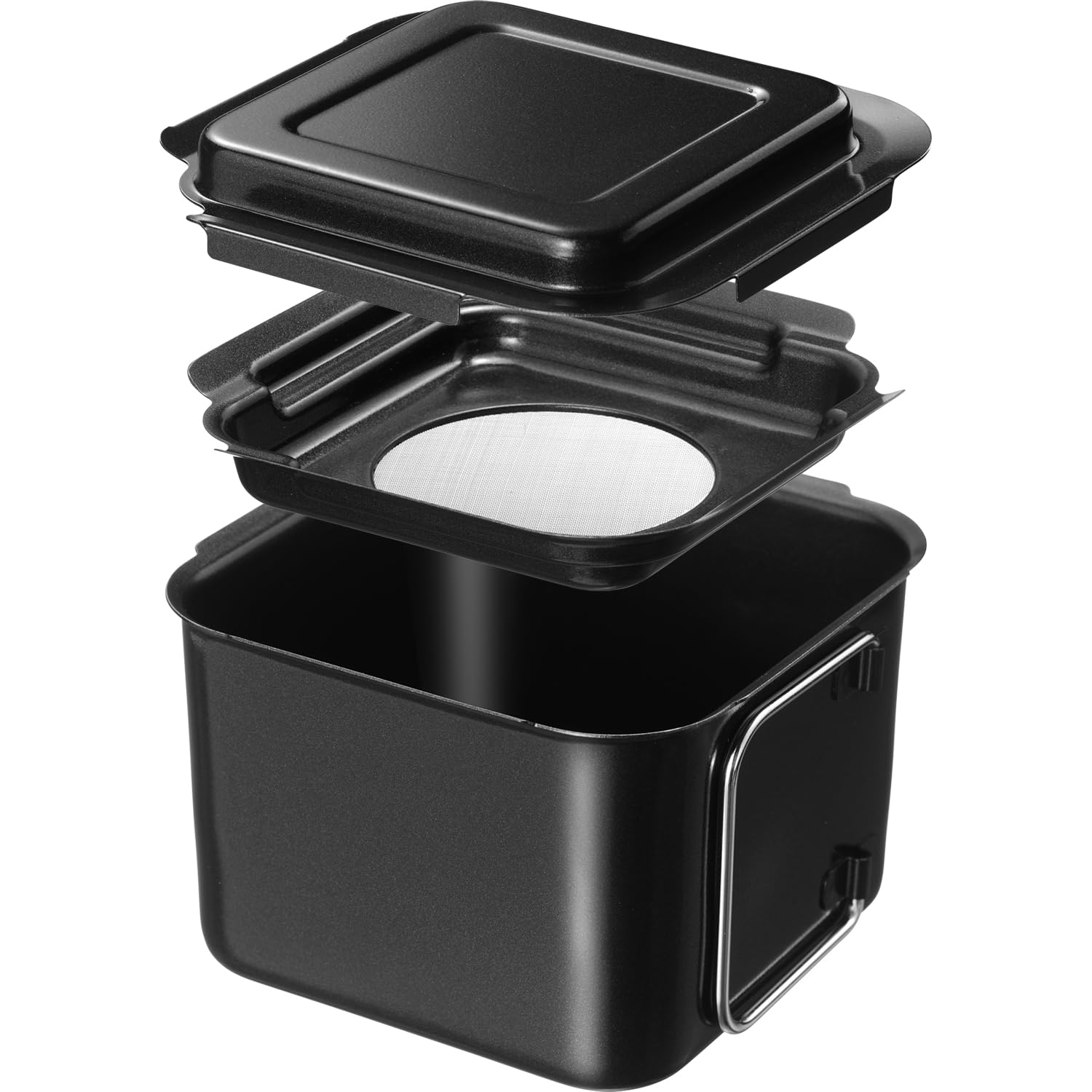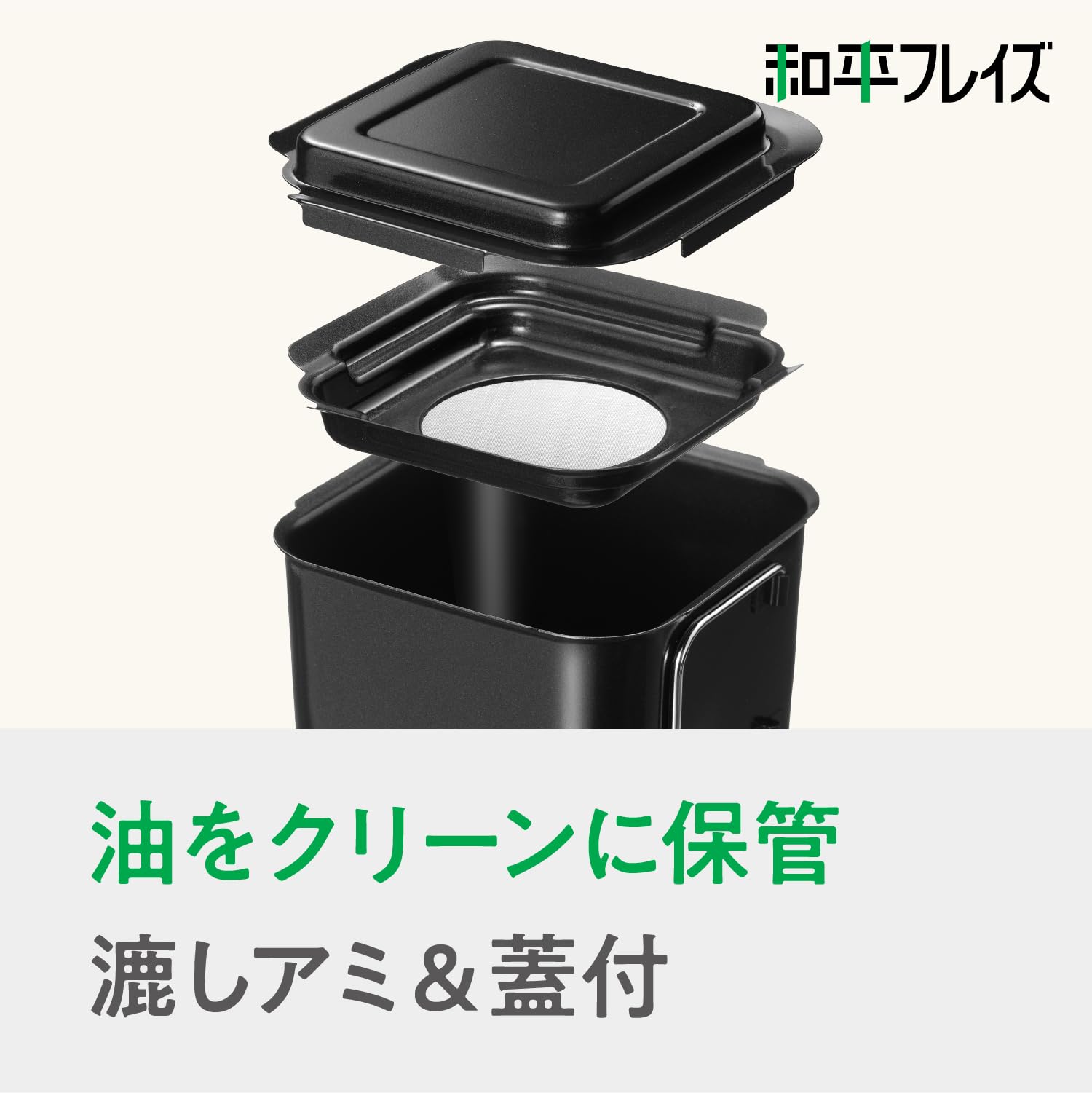 和平フレイズ 小さい オイルポット 0.8L 蓋付 鉄 ふっ素樹脂加工 四角い 漉しアミ付 油 再利用 ポコフリット RD-0097