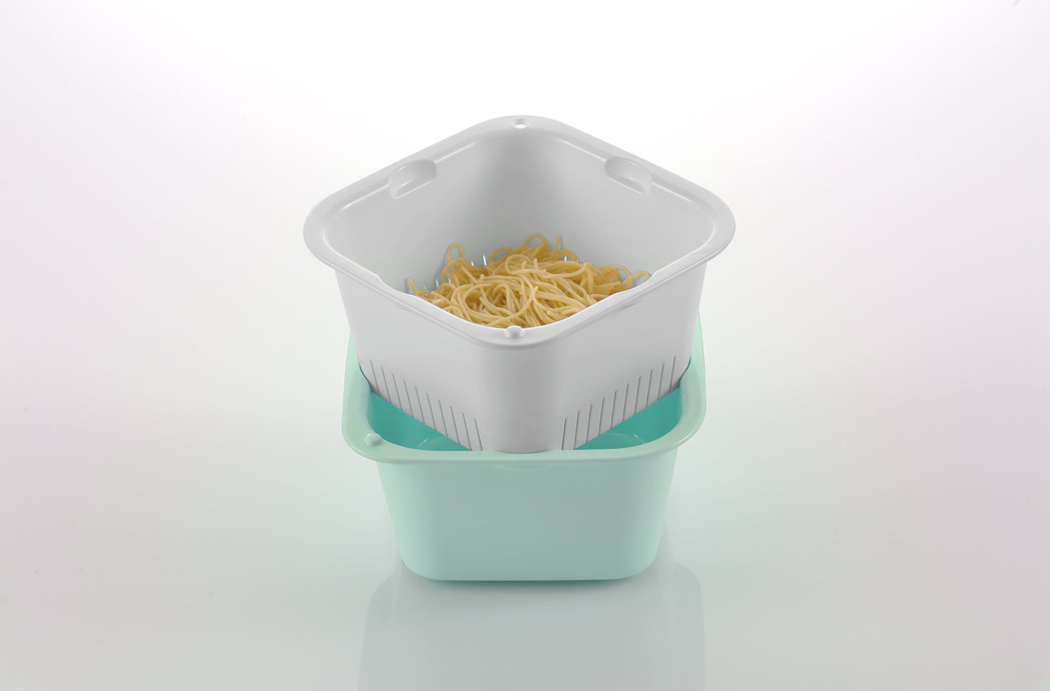 ●スリット穴で細い食材もキャッチするので、麺類の湯切りにも使用できる(深タイプのみ)