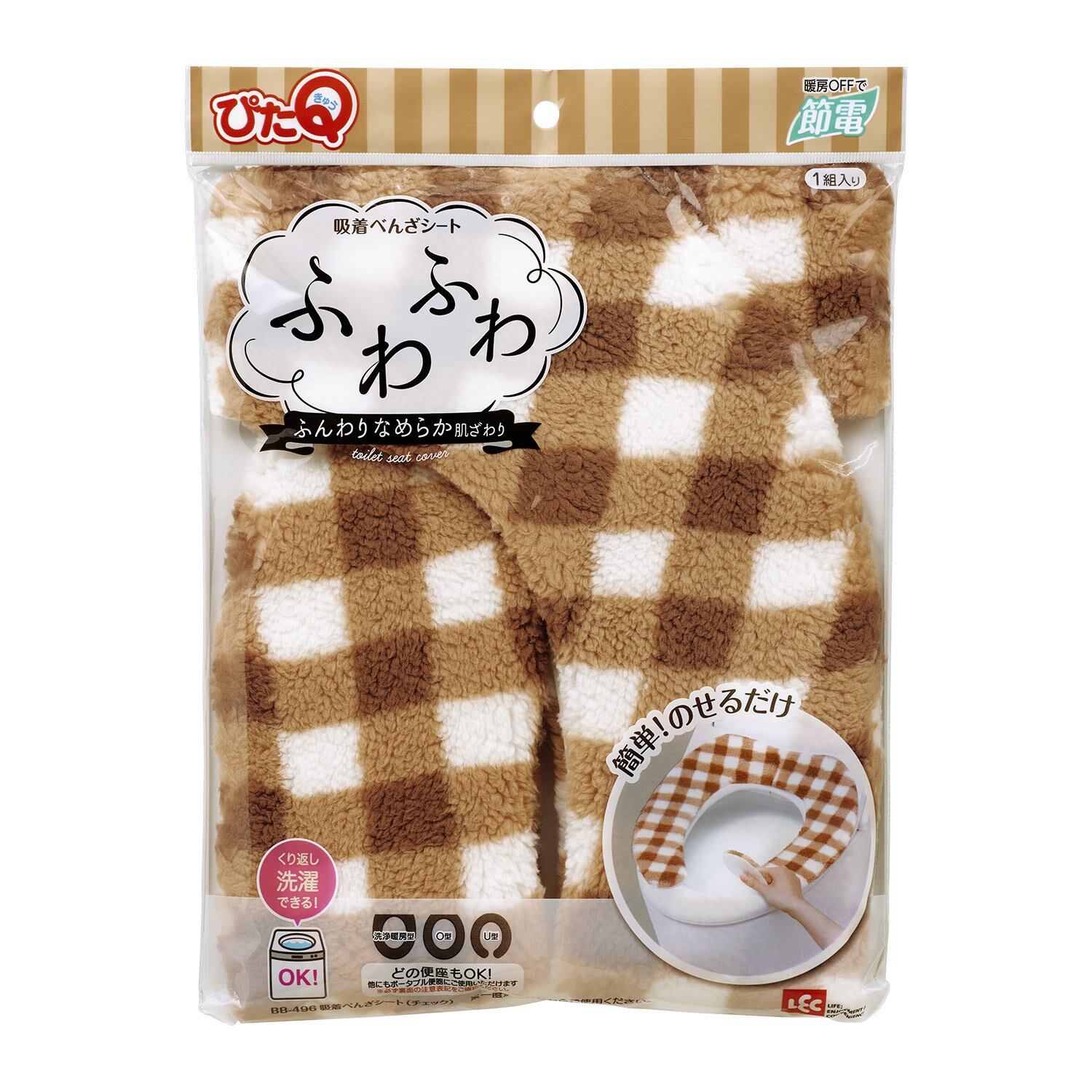 【限定特価】レック ぴたQ 吸着 べんざシート ふわふわ ボア (チェック ・ ブラウン) 洗濯OK BB-496