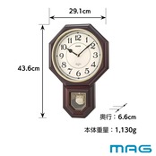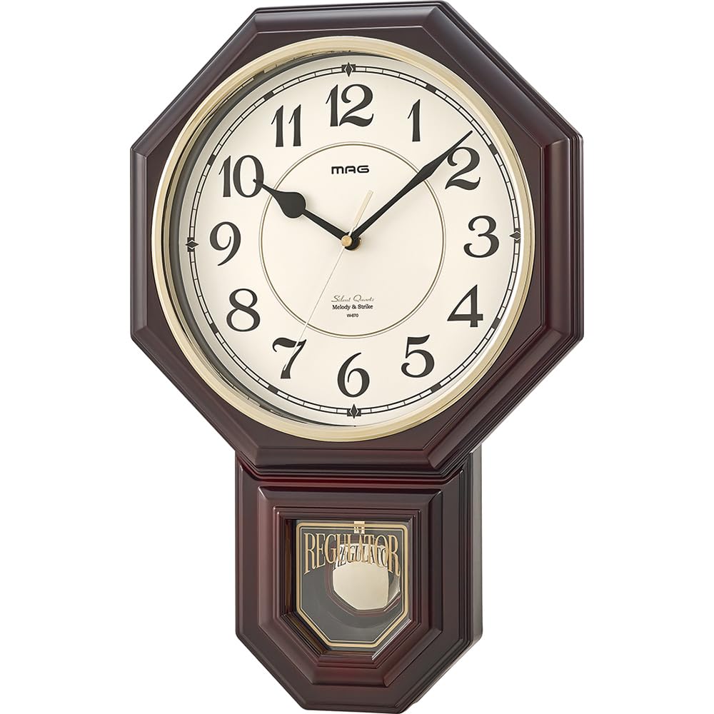 MAG(マグ) 掛け時計 振り子 アナログ 西洋館 静音 連続秒針 メロディ 報時機能付き ブラウン W-670BR