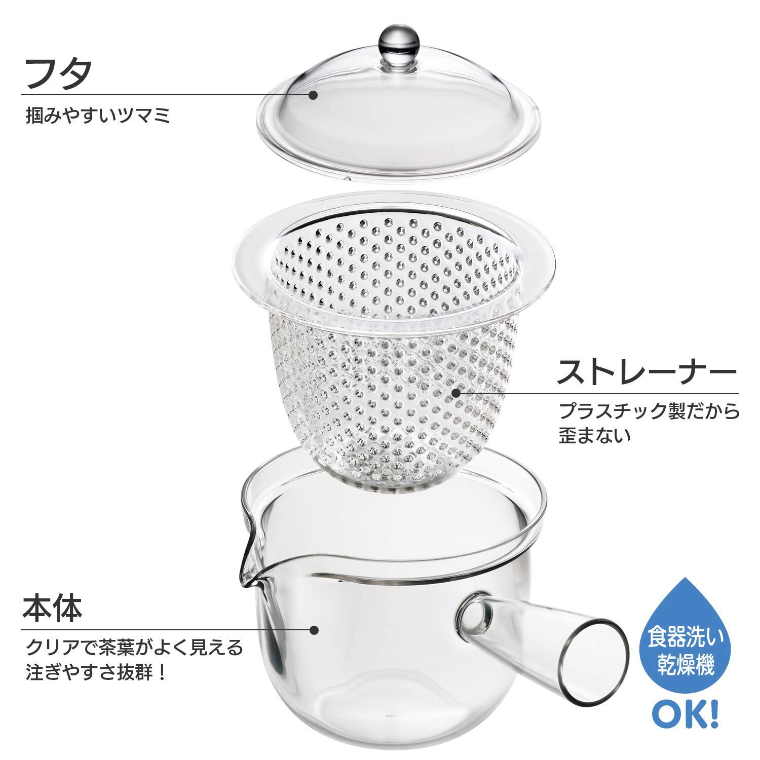 割れにくく使いやすい、ガラスみたいなプラスチック製の急須です。