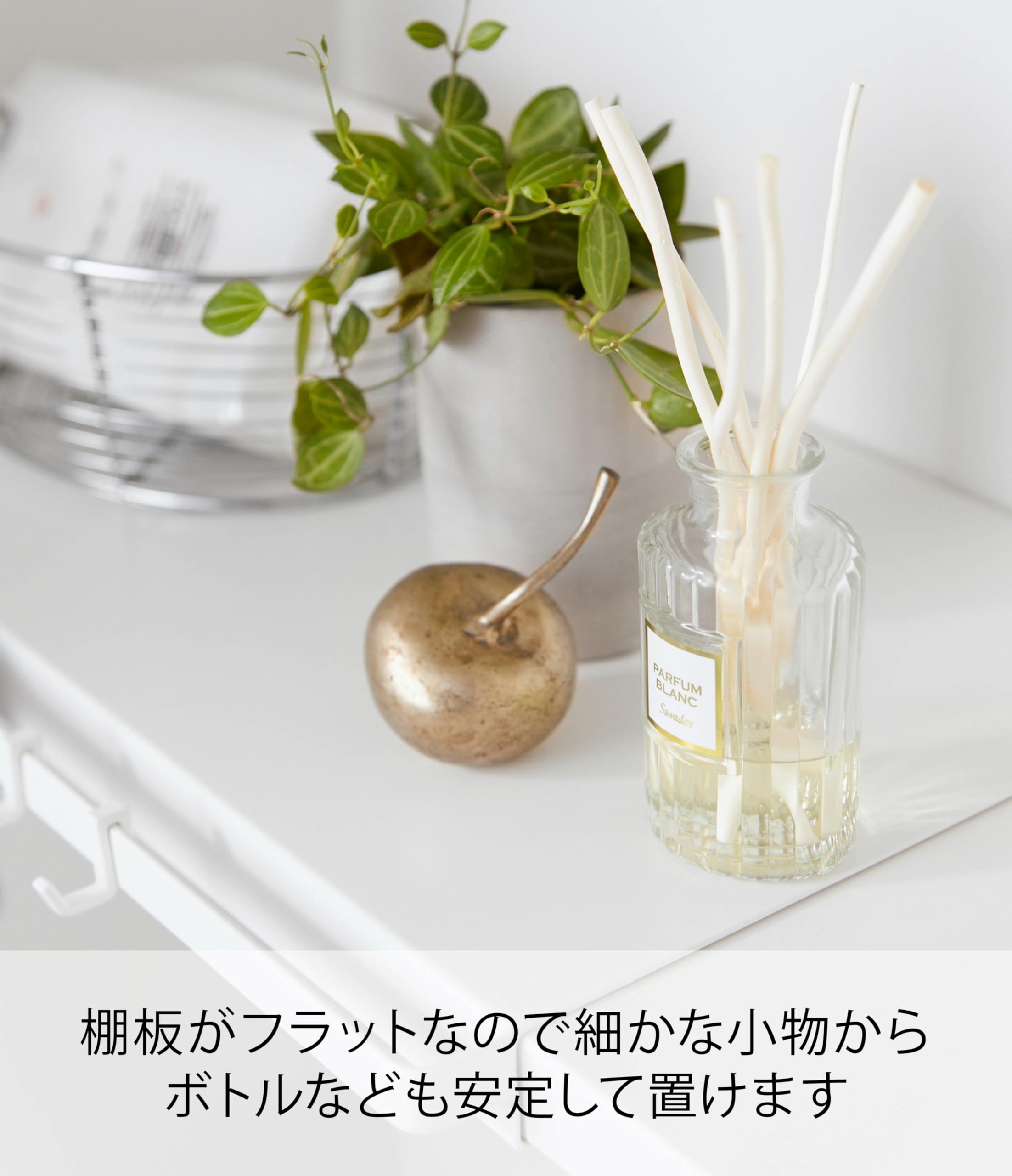 フラットな棚になるので、細かい小物からボトルなどの不安定なものもしっかり置くことができます。