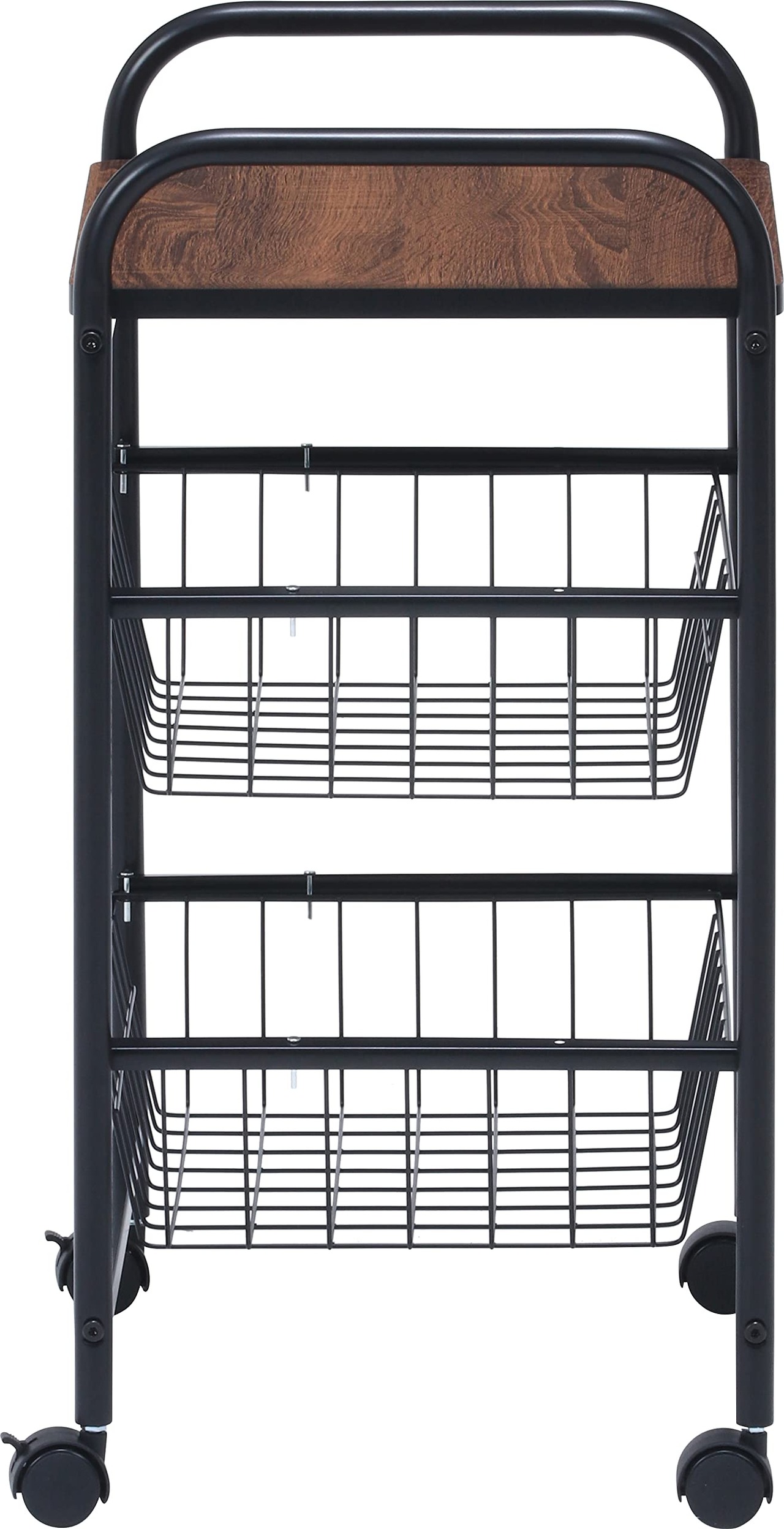 不二貿易 キッチンワゴン キッチンラック 幅45×奥行35.5×高さ69.5cm ブラック ブラウン 引き出し バスケット付き キャスター付き 15420