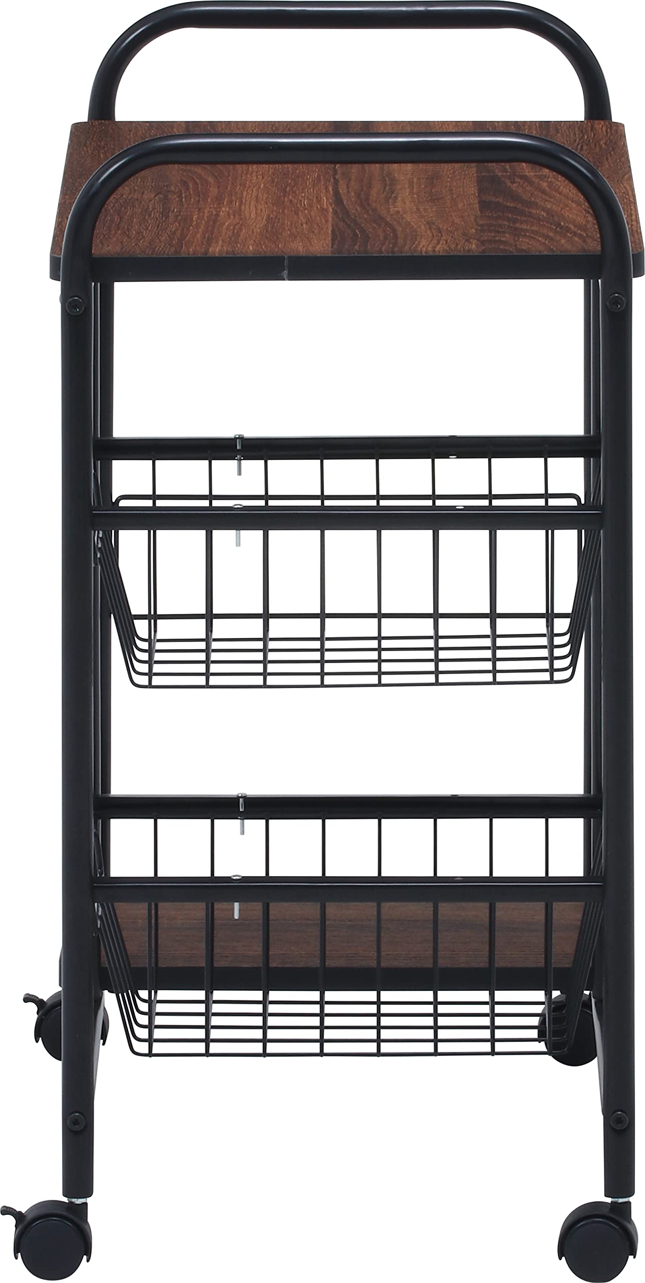 不二貿易 キッチンワゴン キャスター付き キッチンラック レンジ台 一人暮らし スライド棚 引き出し収納 バスケット付き 幅56×奥行35.5×高さ69.5cm ブラック ブラウン 14639