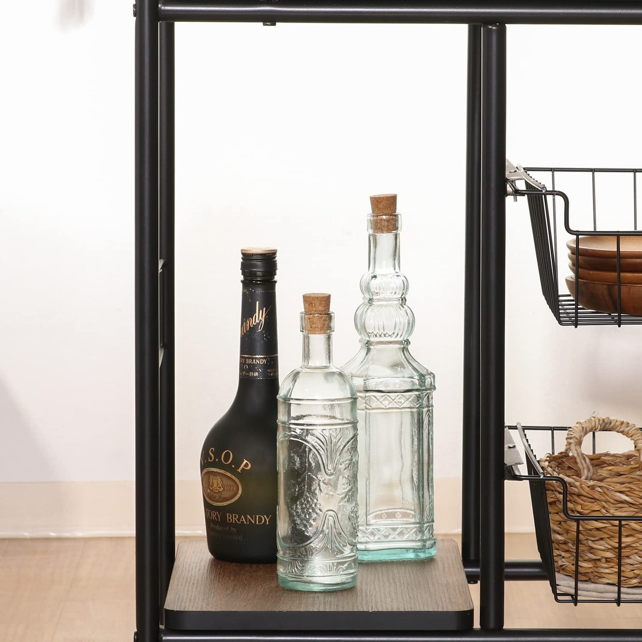 バスケット2杯付きで、小物や食品ストックもまとめて収納できます。
