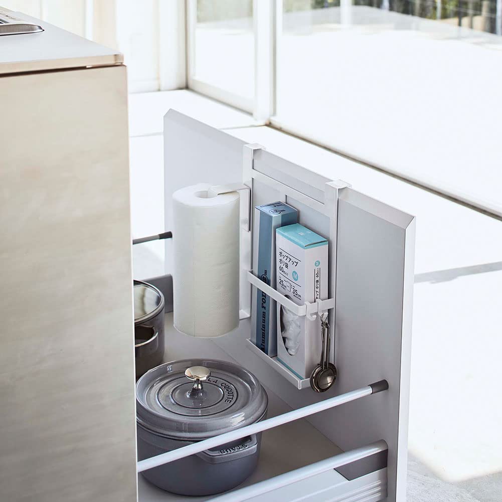 山崎実業(Yamazaki) シンク扉 キッチンペーパー & ラップホルダー ホワイト 約W25.5XD10XH30(本体)cm タワー tower 様々なサイズのロールペーパーに対応 キッチンペーパーホルダー ポリ袋 キッチン小物 ホルダー 5694