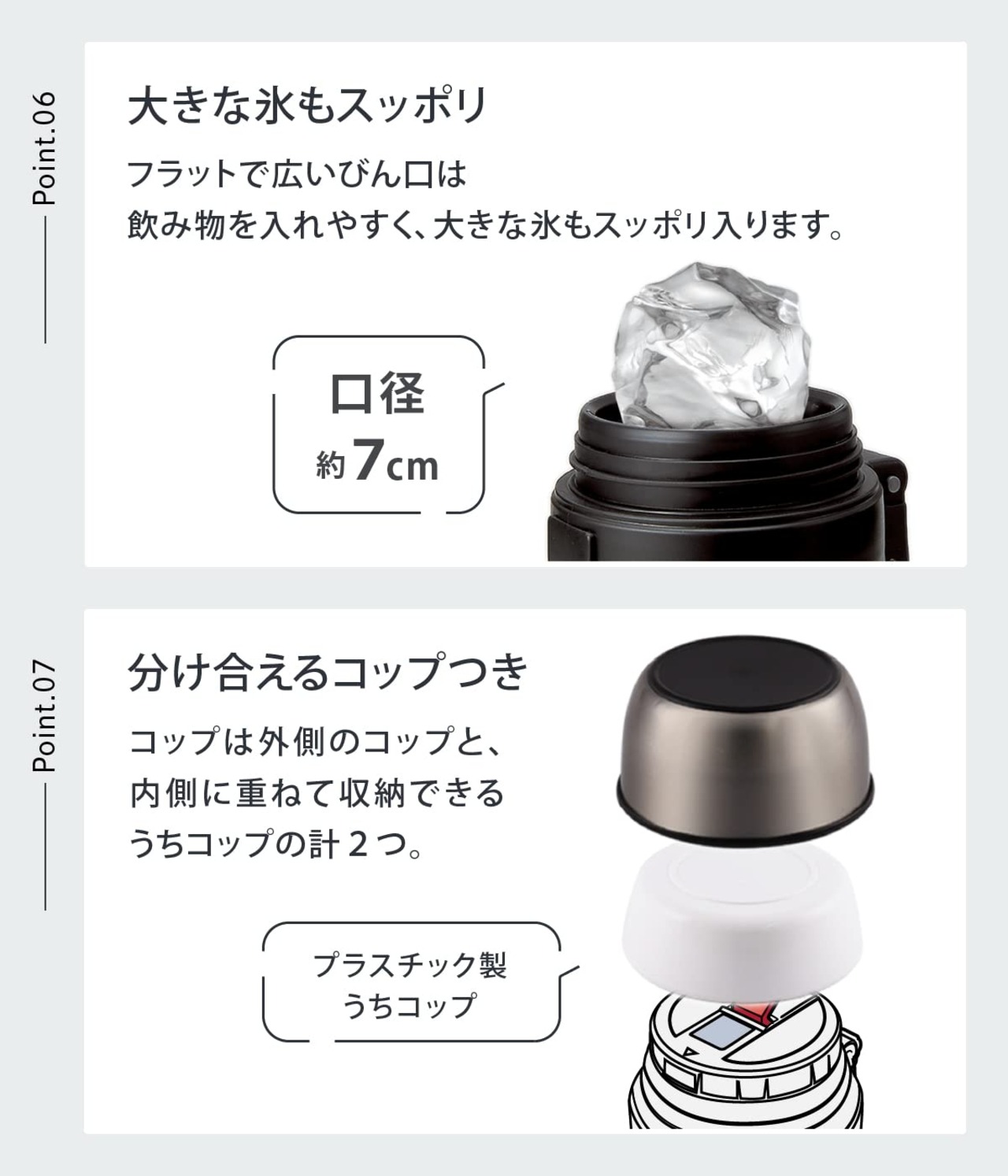 ●分け合って飲めるプラスチック製内コップ付。●中せんが分解可能で中までしっかり洗えます。●引き出して使えるプルアップタイプのソフトハンドルと着脱式の下げひも付。●空だき防止、再沸騰、上ぶた着脱式、360°回転、マグネット式プラグ、電動給湯、カルキとばし、プラスチックボディ