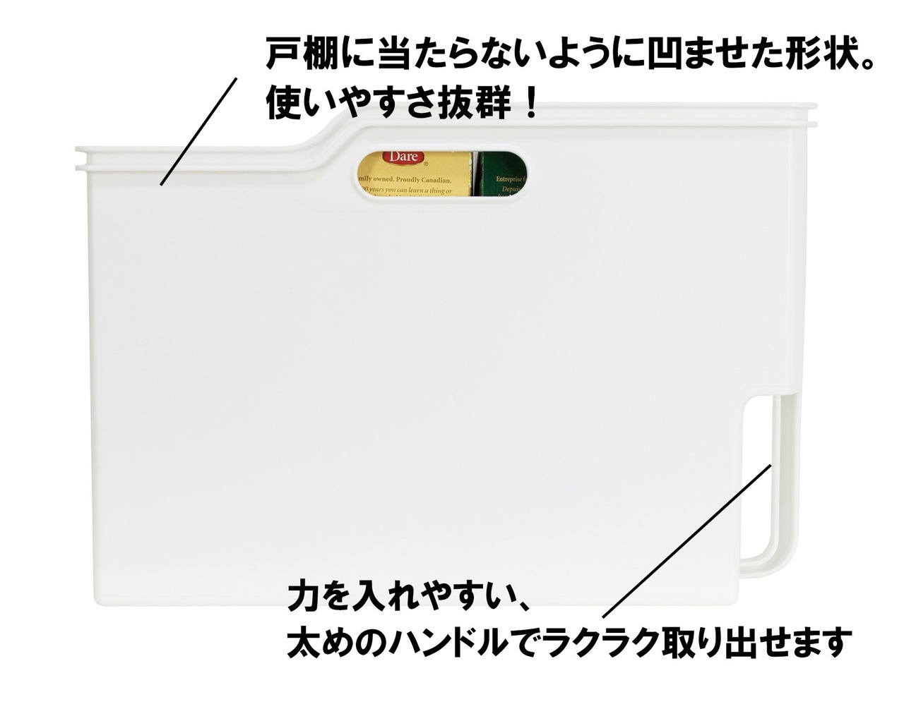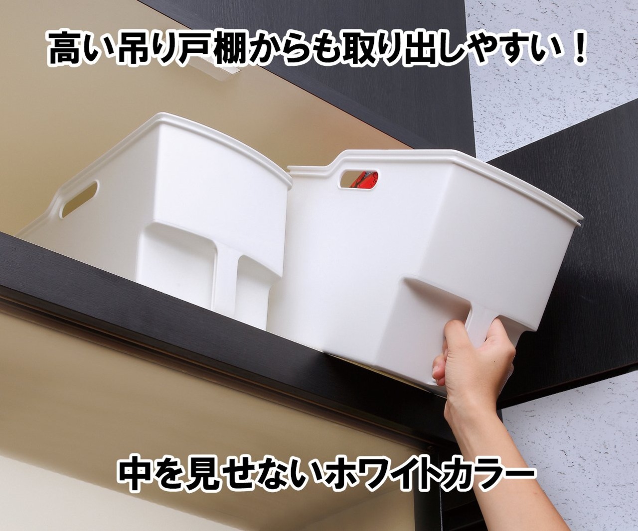 取っ手付きなので、吊り戸棚など高い場所の収納に便利。