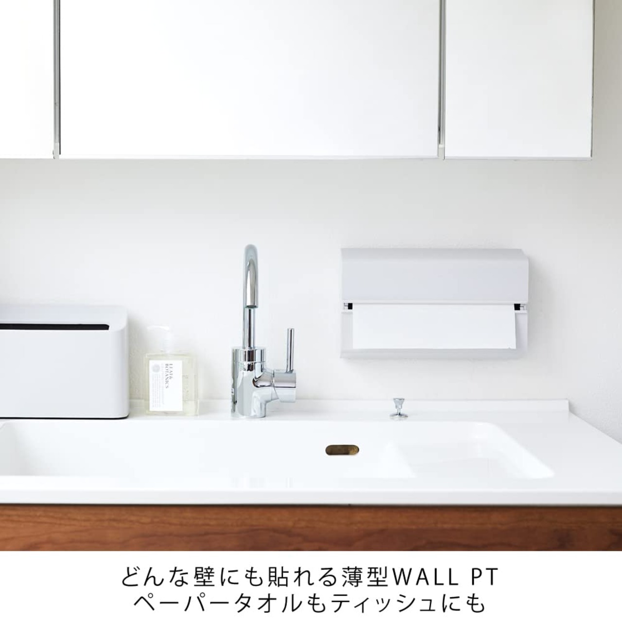 壁貼りWALLにペーパータオル仕様を新設・厚みもスリムな、コンパクトでかさばらない壁掛け専用のティシュケースWALLのキッチンパーパー、タオルペーパー仕様。・洗面やキッチンなど、タイルの壁からお部屋の壁、スチールの壁(マグネット付属品別売)まで、全ての壁に設置し使える。