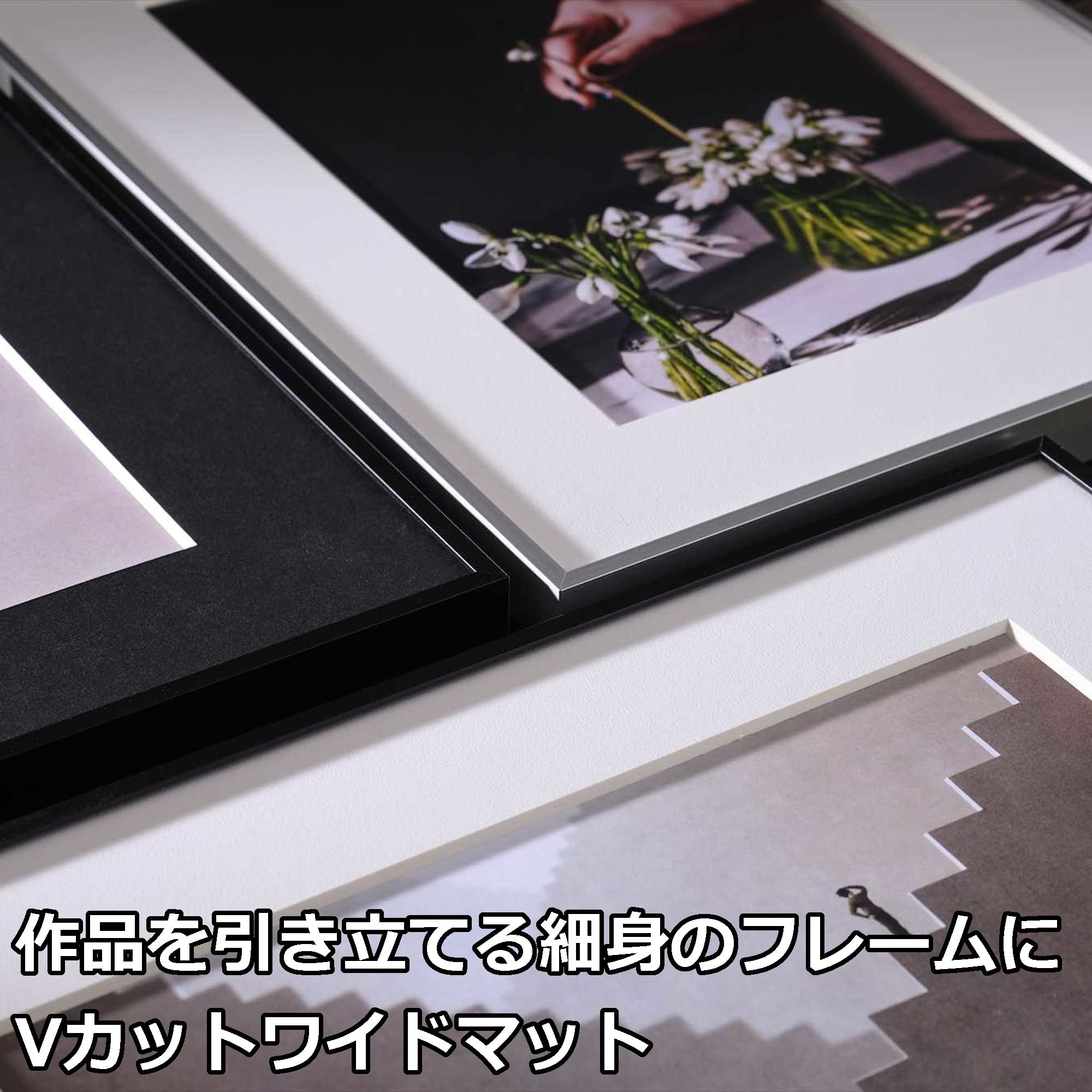 細身のフレームとワイドマットが作品を引き立たせる展示会等に最適なアルミ製額縁です。