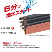 超強力シリコートワイパーは、PIAA独自のシリコンオイルを配合した最高品質シリコンゴムを採用。ウインドウガラスが乾いた状態でワイパーをわずか5分作動させるだけで撥水膜を形成し雨をはじきます。ウインドウガラスにガラス撥水コーティングをされていても使用でき、撥水効果が薄れてきてもワイパーを作動のみで撥水膜を再度形成します。