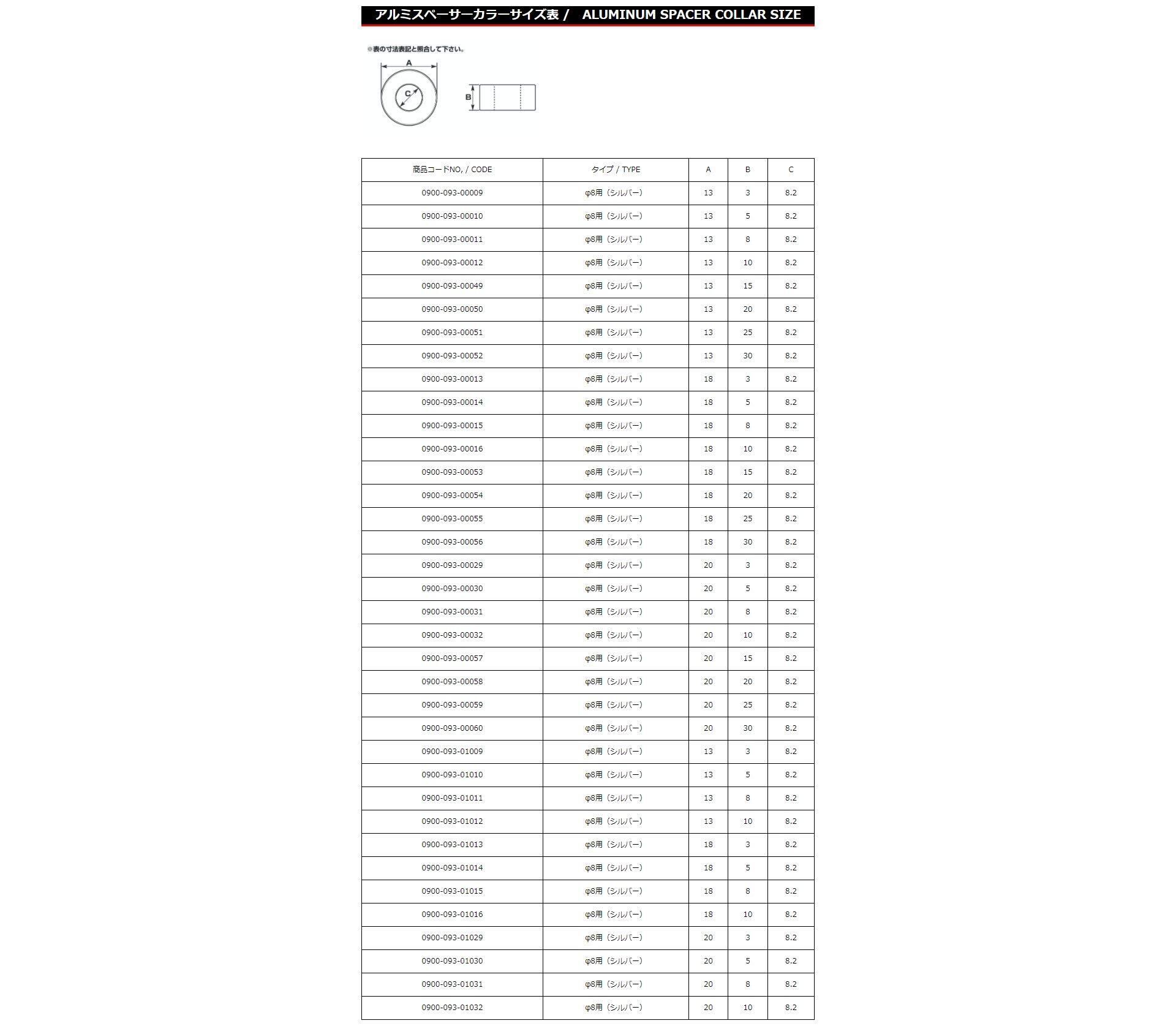 キタコ(KITACO) アルミスペーサーカラー(φ8/13×5×8.2/2個入) 汎用 シルバー 0900-093-01010