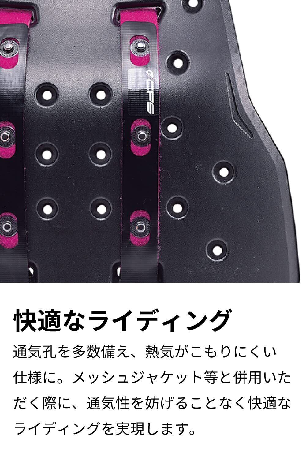 水よりも比重の軽いポリプロピレン樹脂を使用し、特殊成形技術によって構成されたハニカムコア構造を採用することによりCE規格LV.2をクリアした製品の中では世界最軽量を実現。また、単一素材形成なのでプロテクター全体で高い衝撃吸収性を発揮します。 TAICHIジャケットのCPS(チェストプロテクターシステム)はもちろん、他社製のジャケットでも、プロテクター装着用のボタンシステムがあれば簡単に装着することが可能です。ボタンシステムがない場合はTRV065(CPS用 フィッティングベルト)を購入することで身体に装着することもできます。 深刻なダメージにつながりやすい胸部を守りつつ、軽量化も併せ持ったTECCELチェストプロテクターで、万一に備えた快適なツーリングを楽しみましょう。