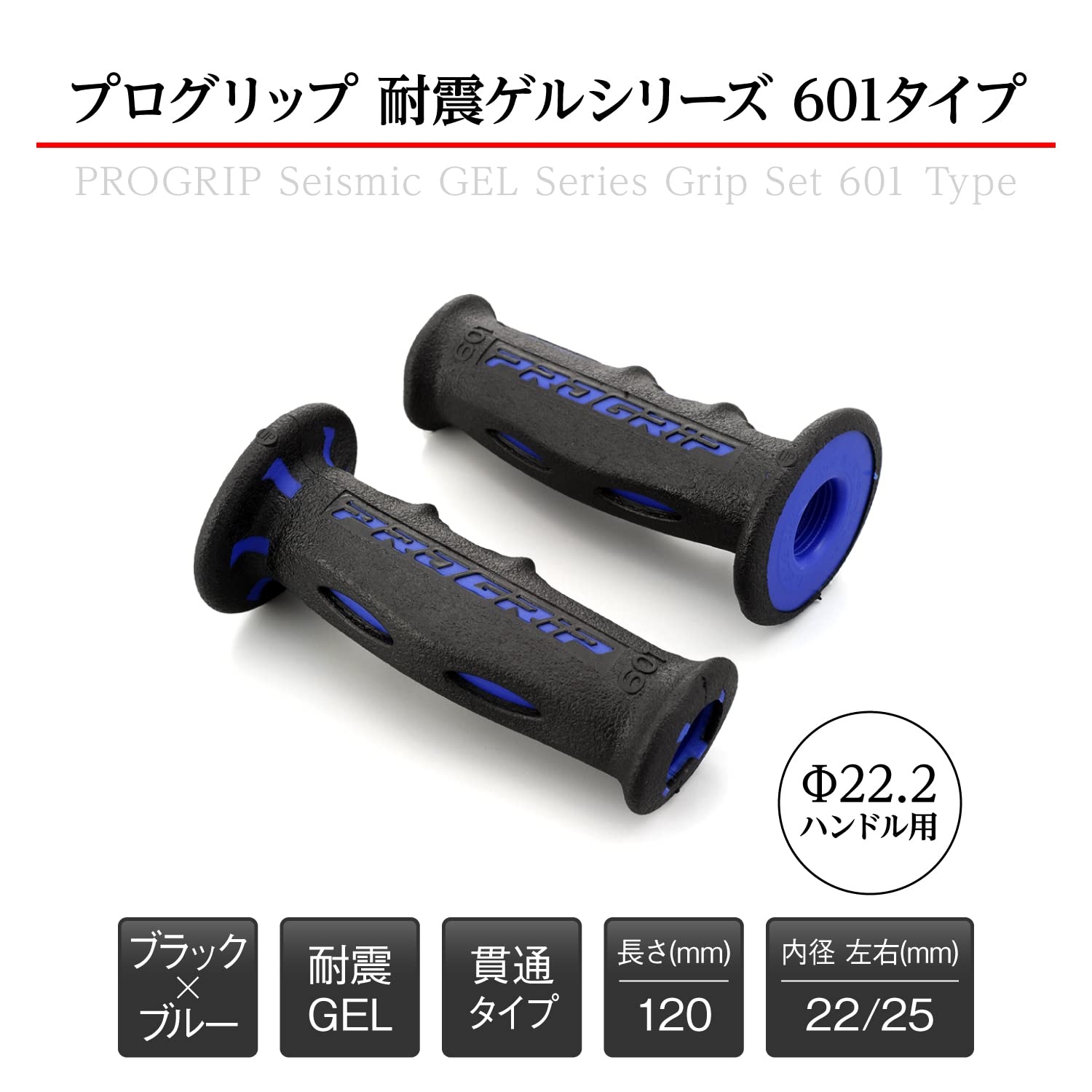 デイトナ(Daytona) PROGRIP(プログリップ) バイク用 グリップ ハンドル径φ22.2用 120mm 耐振ゲル エンド貫通 601タイプ ブルー 98025