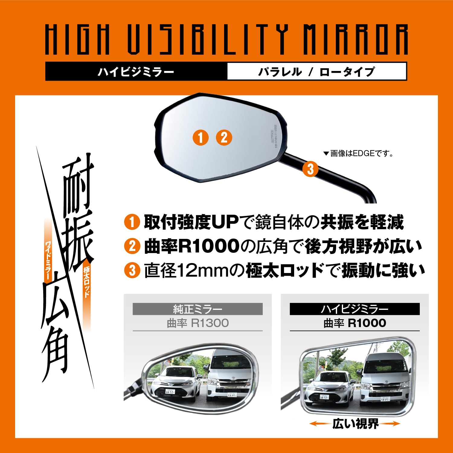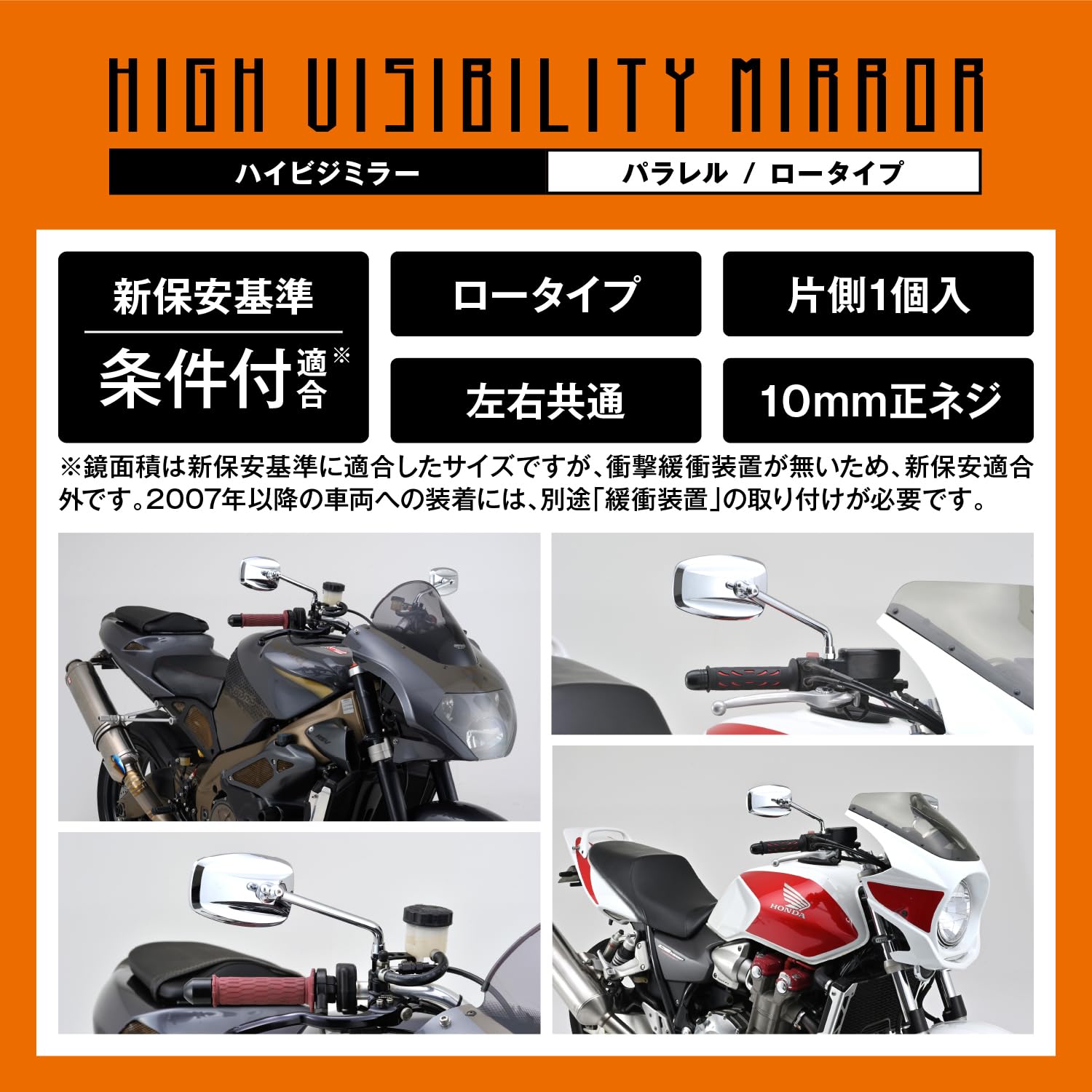 デイトナ(Daytona) ハイビジミラー バイク用 ミラー 10mm正ネジ 耐振 広角 パラレル ロー クローム 左右共通 片側1本 15403