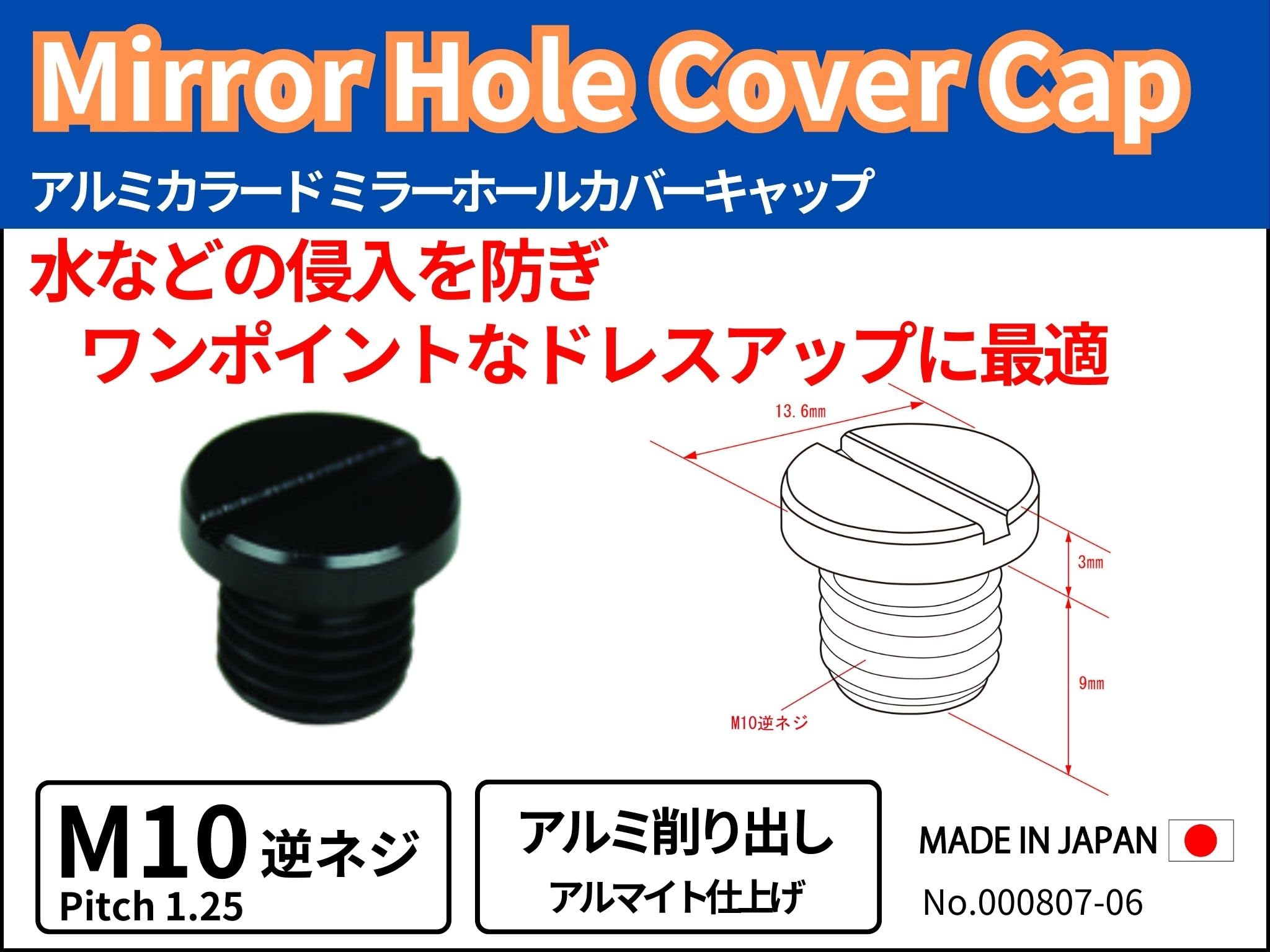 アルミ削り出しのミラー穴埋めキャップ、バーエンドミラー装着時などに使用しなくなったミラー穴を埋めるボルトです。MADE IN JAPAN ハンドル周りのクオリティを高めます。