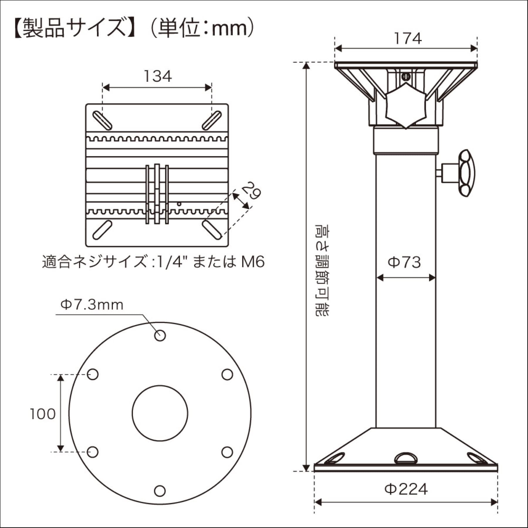 ダイヤルネジを緩めるだけで、無段階で高さ調節ができるシートペデスタルです。500-750mmの間で調節可能です。