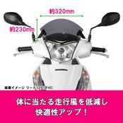 ヘッドライト上部形状に合わせカットされた立体曲面形状により、走行風による疲労を軽減させるエアロバイザーです。