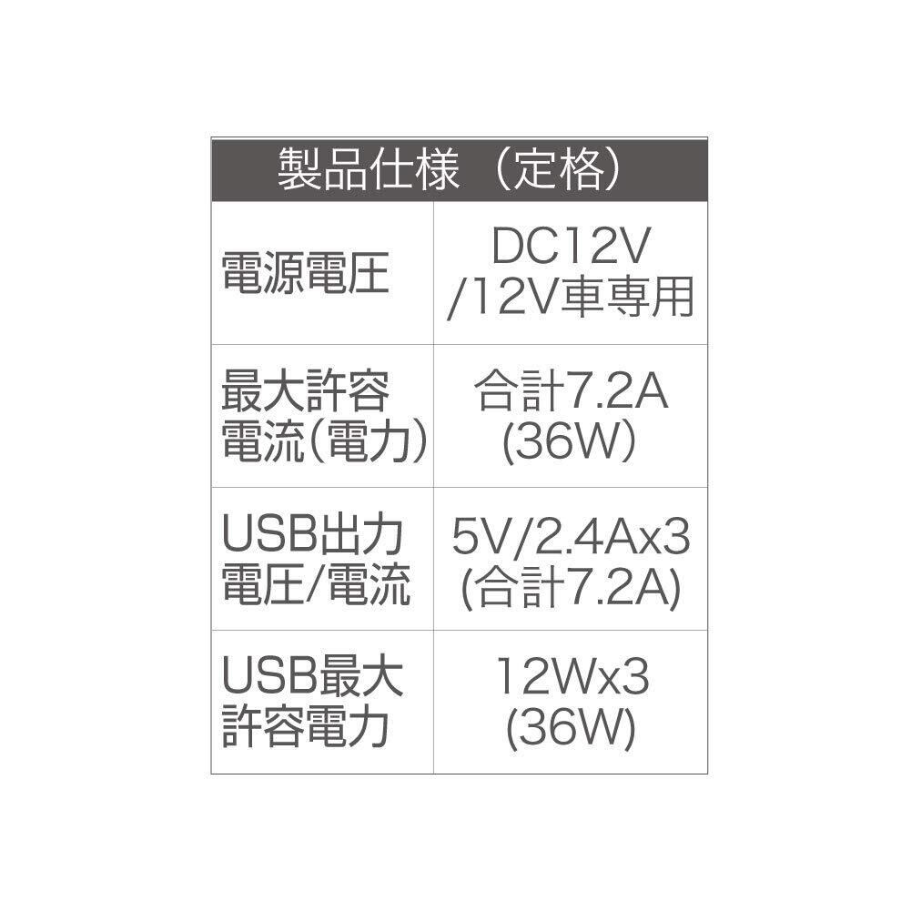 ●USB出力は5V/2.4A×3ポートで合計7.2Aです。