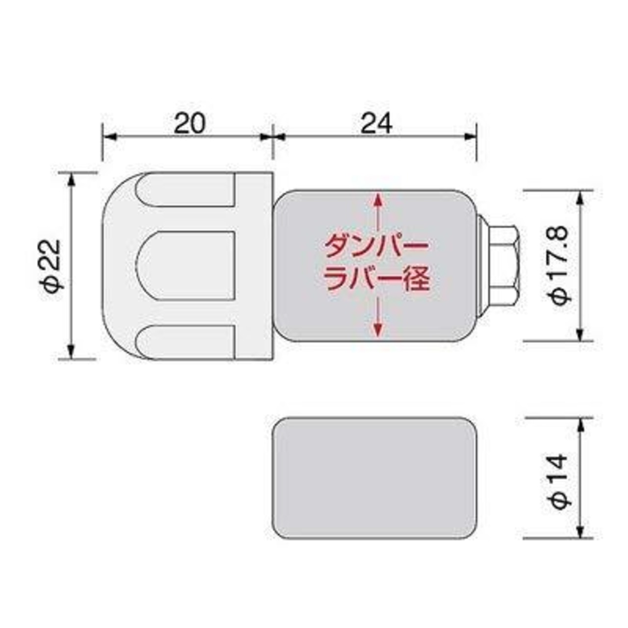 2種類の付属ラバーで内径φ14~15/18~19mmに適合