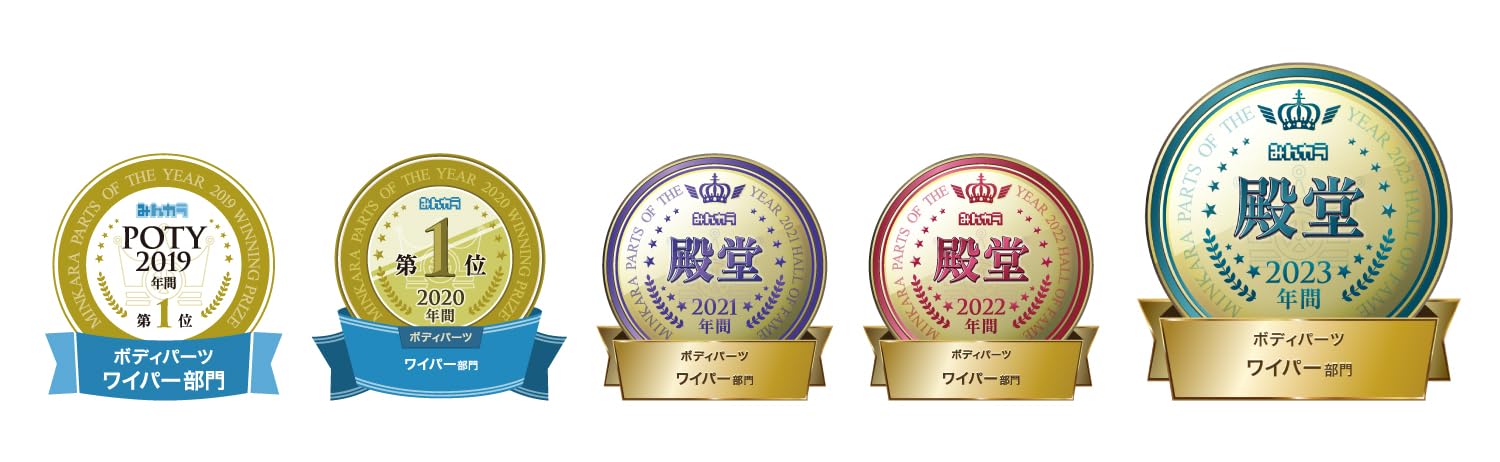 エボジウム スプリングという芯軸 がゴムで覆われ、金属部品が大幅に少ない構造の為、錆び、熱射などにより金属が劣化し、圧力がバラつく事がなく、拭きムラやスジ状の拭き残しが発生しにくく、優れたワイピング効果が持続します。更に、日本仕様に特別開発されたFXラバーは撥水コーティング剤との相性も改良されています