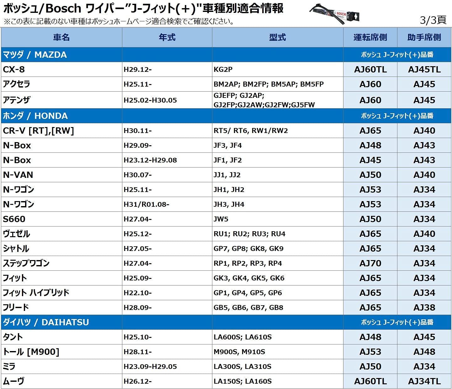BOSCH(ボッシュ) ワイパー ブレード エアロツイン J-フィット 500mm AJ50 オールシーズン対応 国産車用