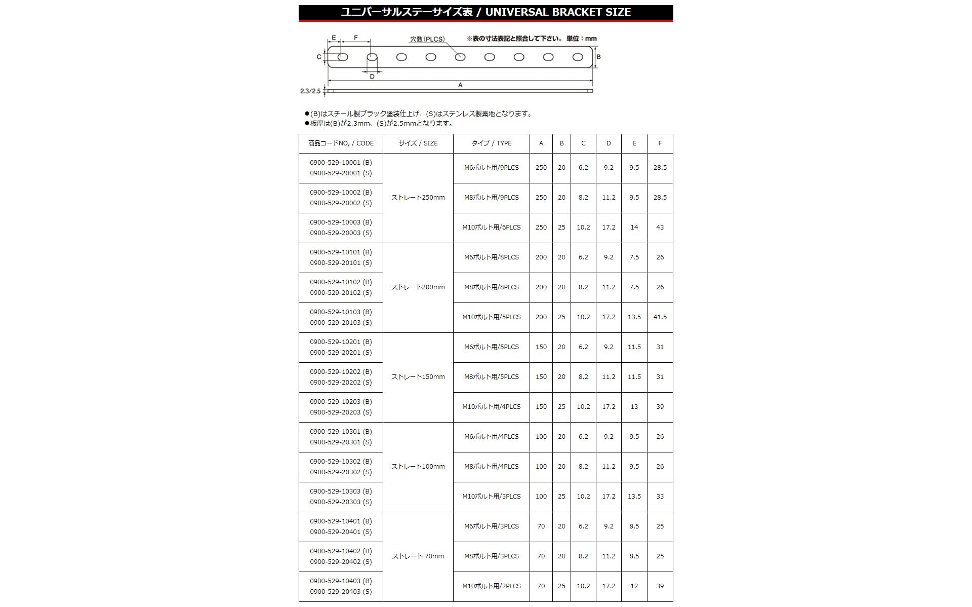 タイプ:ストレート 70mm(2.3mm厚) M10ボルト用/2PLCS