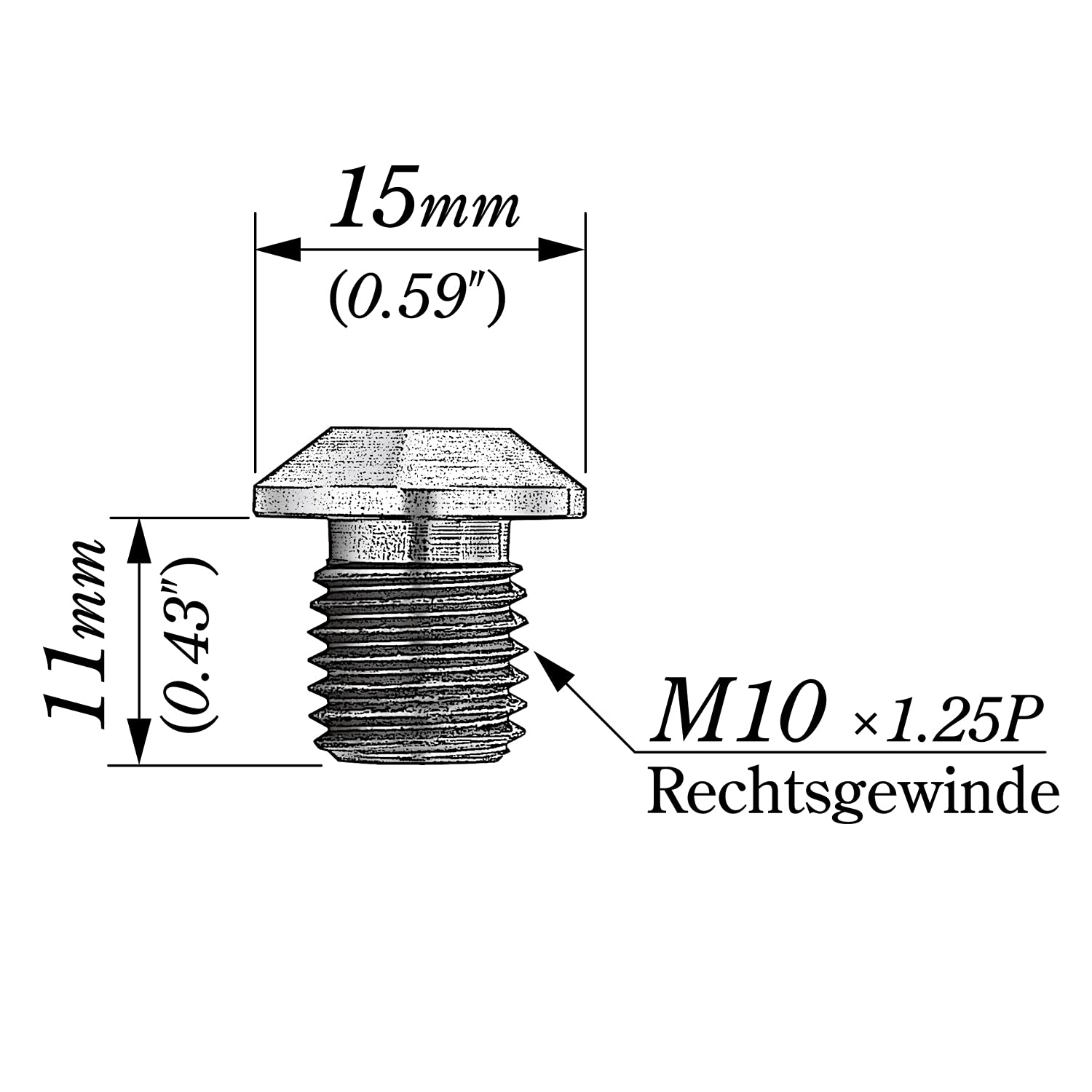 【寸法】M10xP1.25、外径15mm、首下1mm