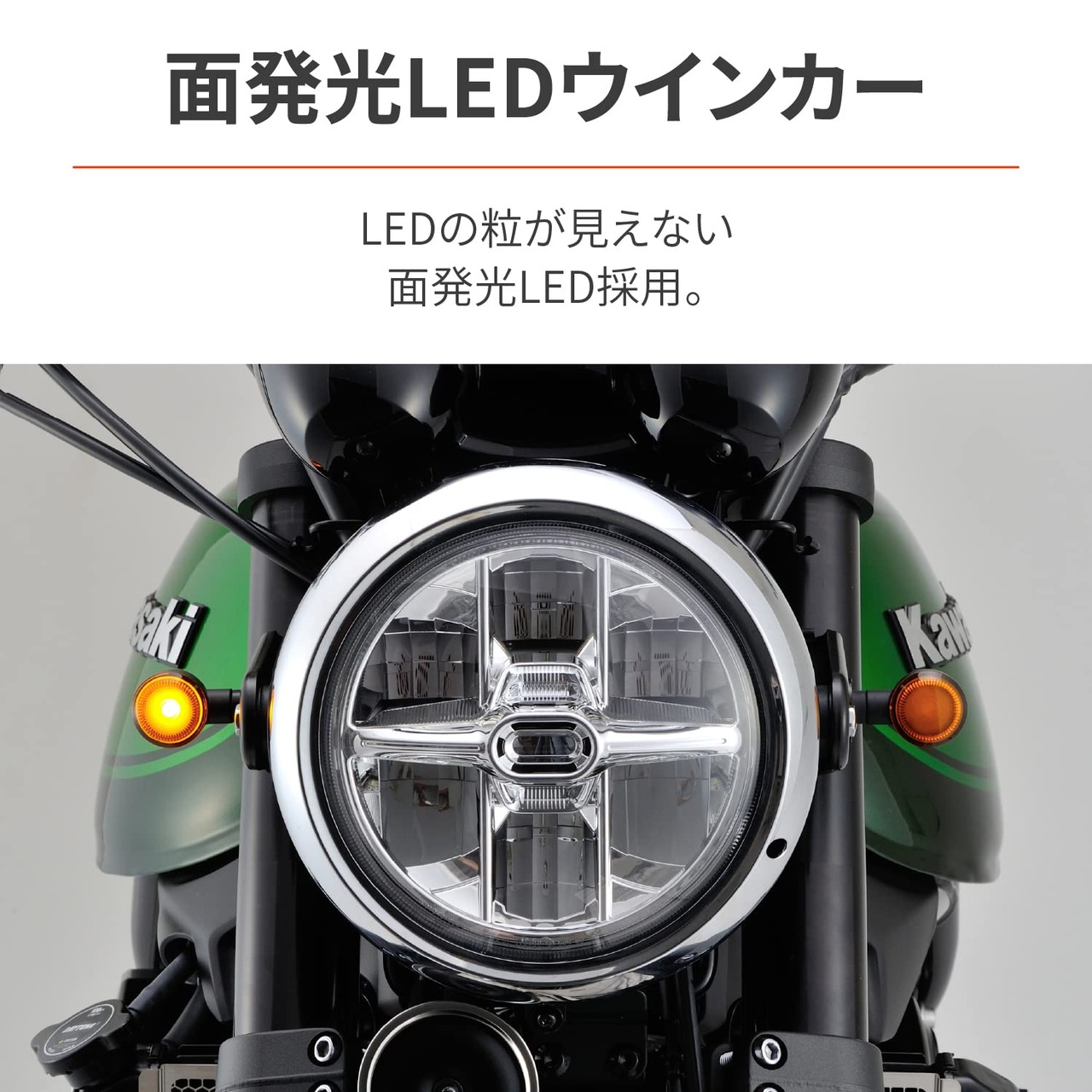 面発光LEDを採用したコンパクトウインカー。面発光LEDを採用することで、従来品のようにLEDの粒が見えてしまうことがありません。本体はアルミダイカスト製マットブラック塗装仕上げ。