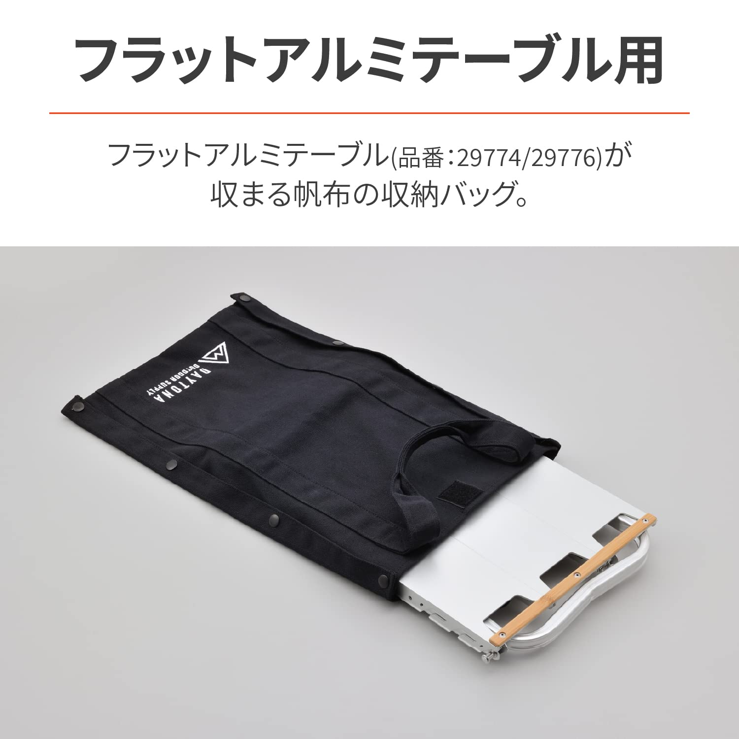 フラットアルミテーブル(品番:29774/29776)が収まる帆布の収納バッグ。