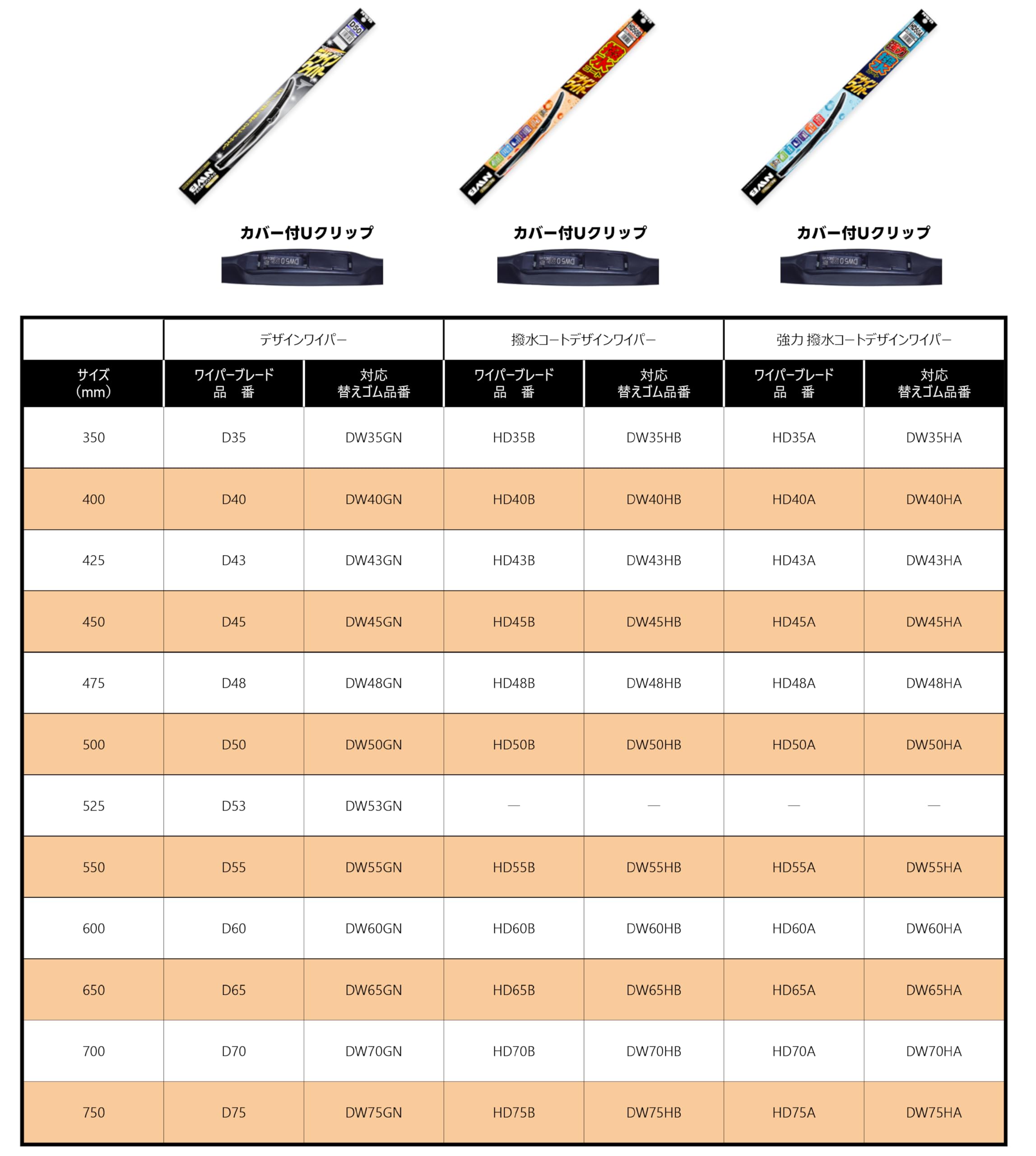 【注意事項】現車に装着されているワイパーの長さ・形状をよくご確認の上、同じ長さ・形状のワイパーをお買い求めください。オプションなど純正エアロワイパー装着車には適合しない場合がございます。
