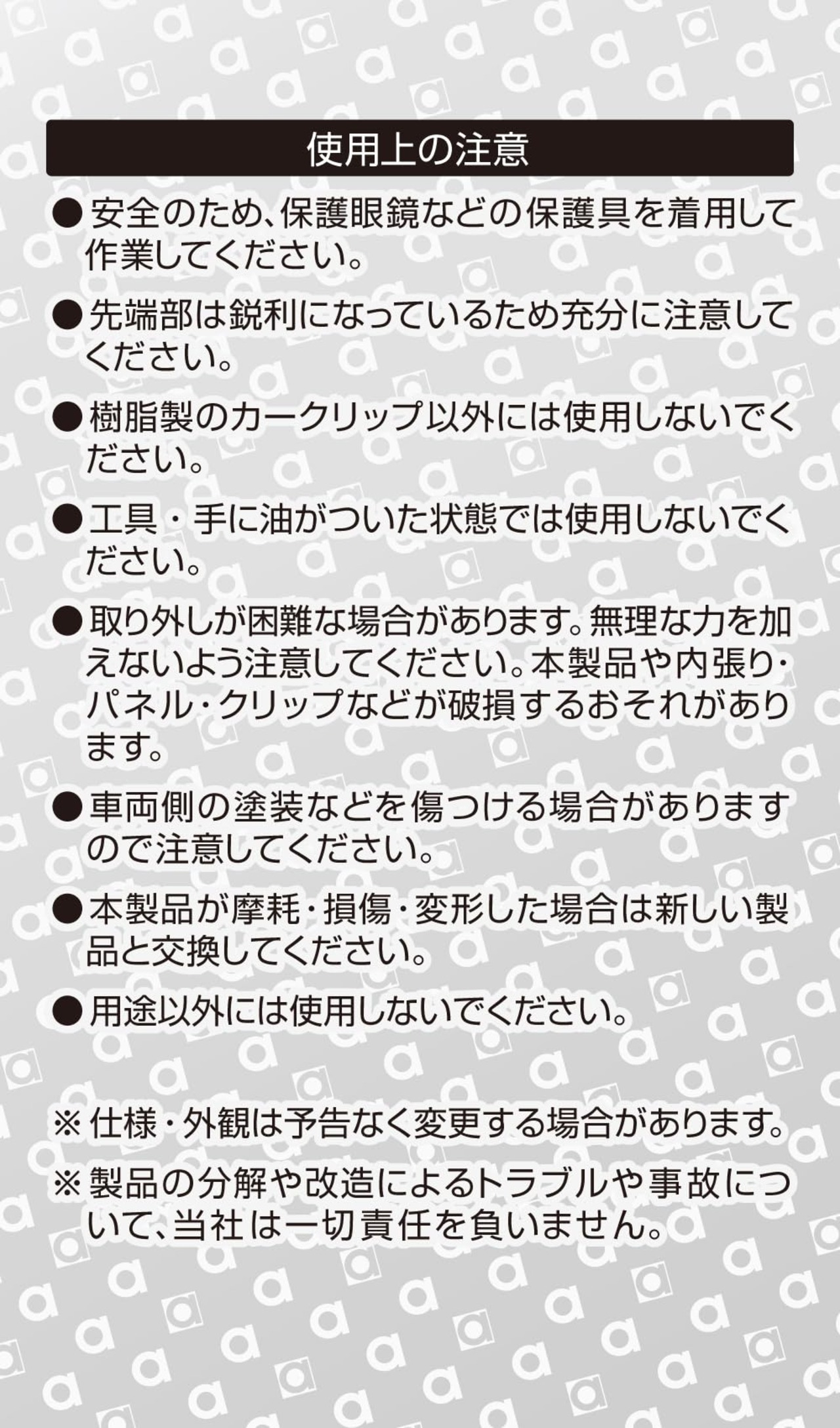■カークリップが簡単に外せる専用工具