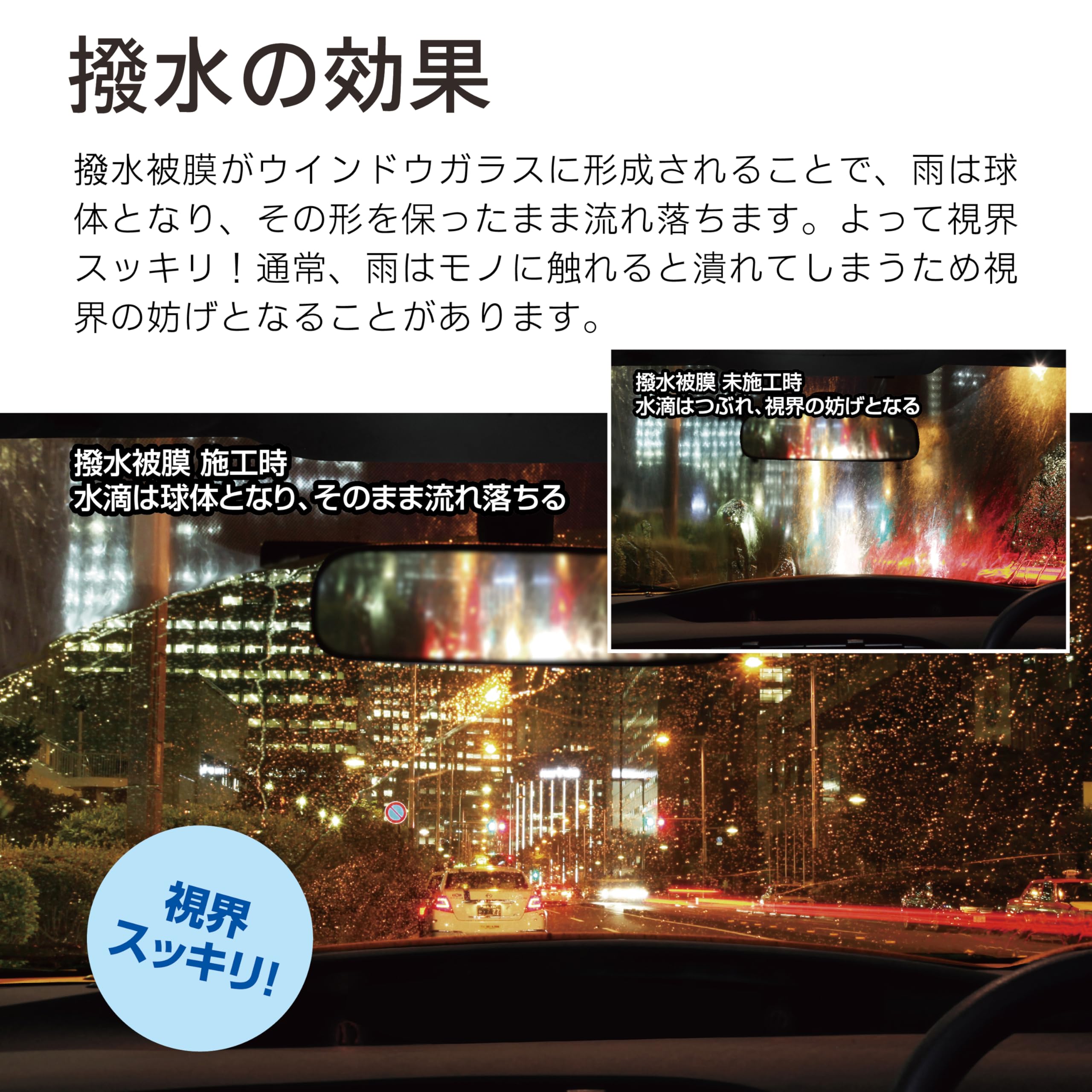 シリコン粒子の効果により、ワイパーを作動するだけで撥水被膜を形成。