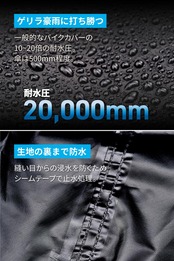 【仕様2】耐水圧20,000mm生地、はっ水加工、縫製ラインにシームテープ処理