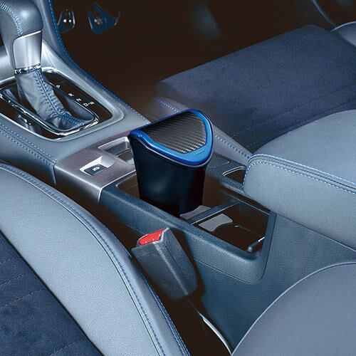 ●カーボン調+アクセントカラ-デザイン、ドアポケットに納まるボトルタイプダストパック