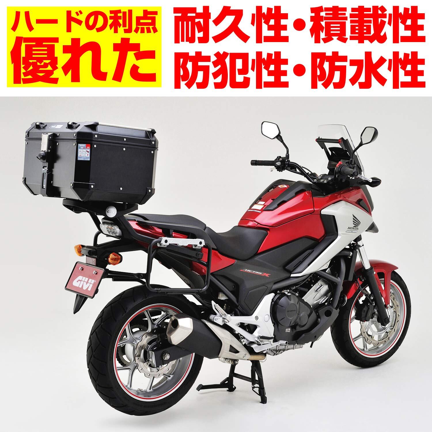 その優雅なデザインに加え、他を圧倒する強靭さと利便性は、発売を待ち望んだ世界中のライダーから絶大な評価を獲得。ケース本体は1.5mm厚のアルミ板と角部分の補強にテクノポリマーパーツを採用した堅牢な構造。取り付けは従来のモノキーケースと同様で高い適応性を持ちます。